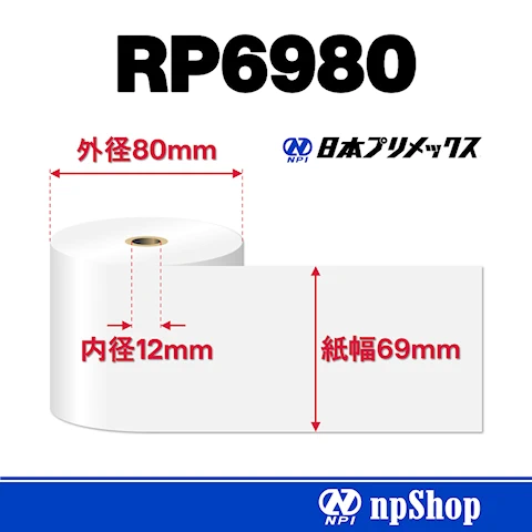 RP6980|上質紙ロール(10巻入)|幅69mm×径80mm|普通紙|日本プリメックスオリジナルロール紙