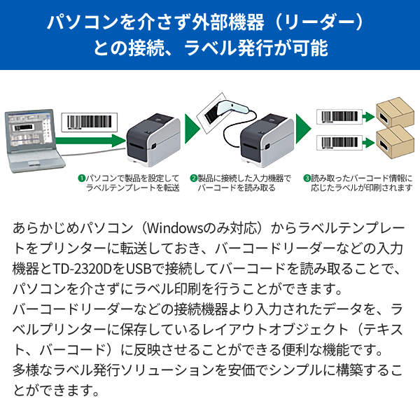 TD-2320D|感熱ラベルプリンター|有線LAN/USB/USBホスト/シリアル|ブラザー